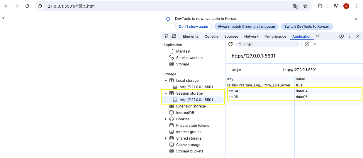 console.log(sessionStorage.getItem("test05")); // "data05"