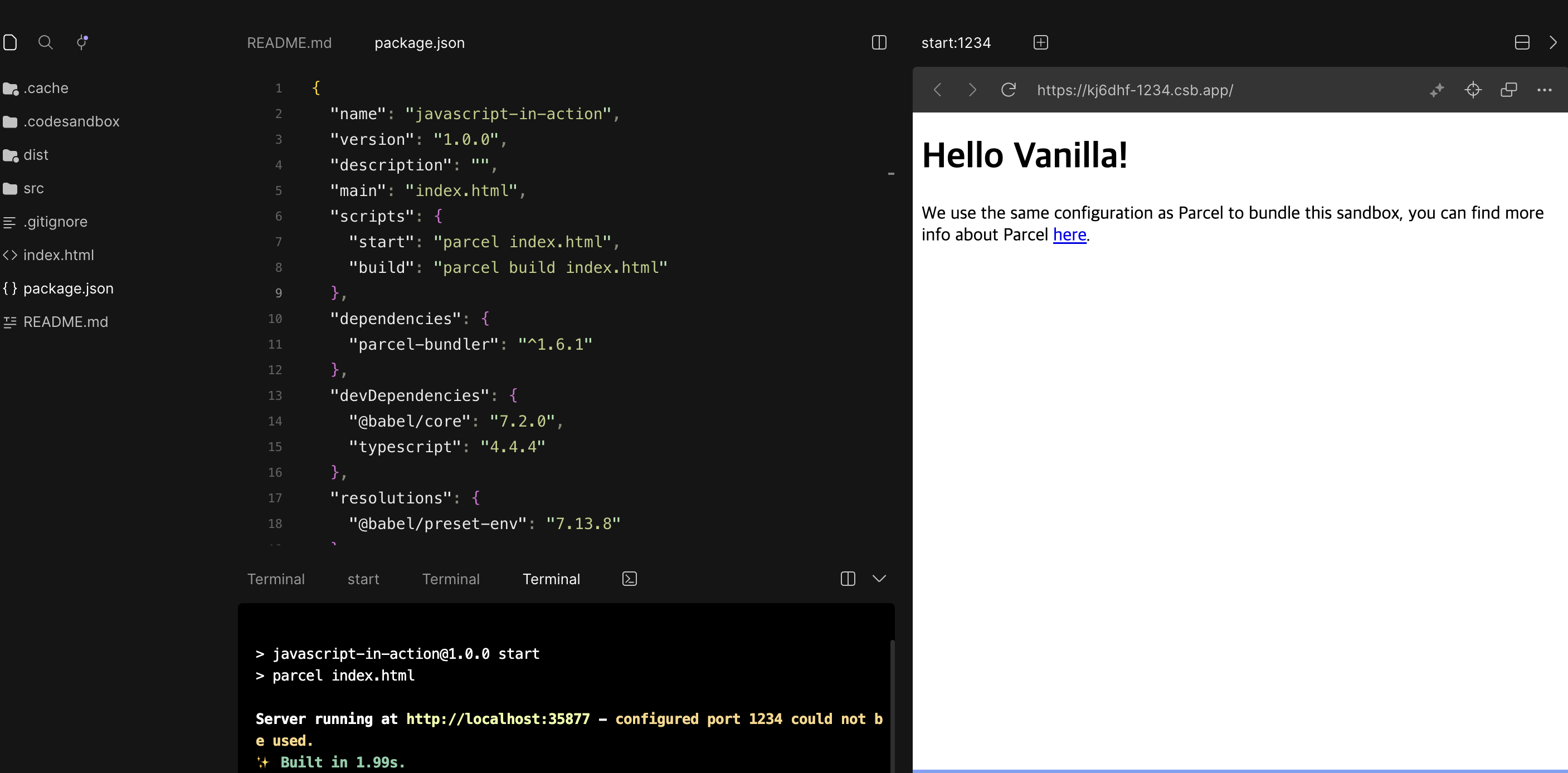 로컬 환경에서는 JavaScript 환경을 설정하기 위해서는 Node.js 환경과 Npm을 설치해야 합니다. 하지만 Codesandbox은 설치가 필요 없이 클라우드 환경에서 개발 환경을 구축 할 수 있습니다.