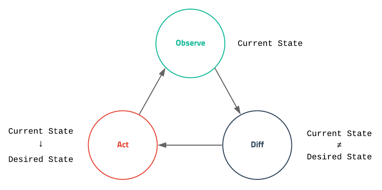 요구 상태 → Kubernetes → 현재 상태 ≠ 요구 상태 → 현재 상태 ⇒ 요구 상태