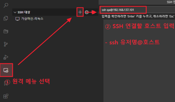 - 우선 vscode에 remote-ssh확장팩을 설치하고