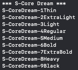 위의 코드를 UIFont의 extension에 구현하여 사용하면 프로젝트에 등록된 모든 폰트의 이름을 확인할 수 있다.