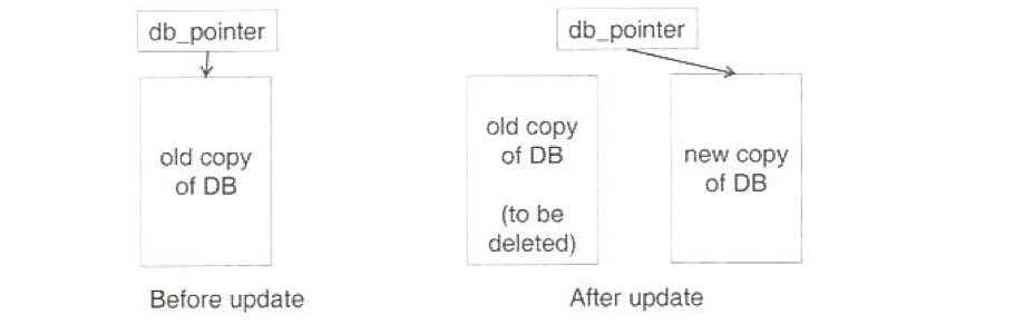 - 모든 업데이트는 데이터베이스의 shadow 사본에서 진행