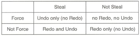 (log force: 트랜잭션을 커밋하기 위해 해당 트랜잭션의 모든 로그 기록(커밋 기록 포함)을 안정 저장소로 강제 저장)