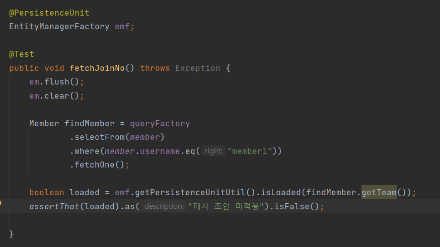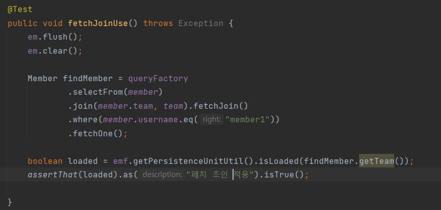 join(), leftJoin() 등 조인 기능 뒤에 fetchJoin() 이라고 추가하면 된다.