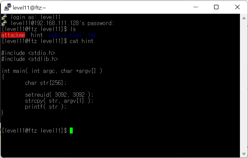 소스코드를 살펴보니 char str은 256 byte의 배열인 것을 알 수 있습니다