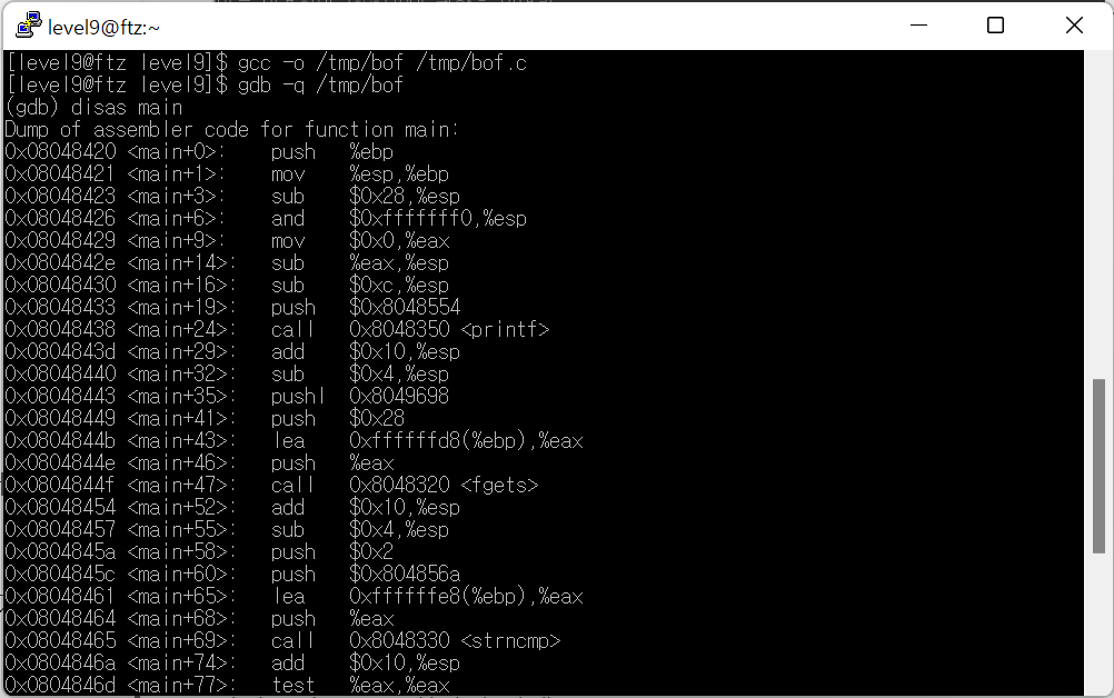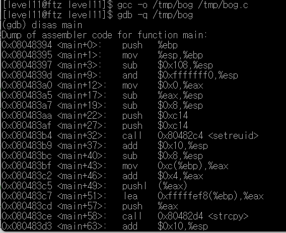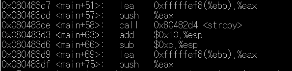 두가지 문장을 통해 buf의 시작점은 ebp-40, buf2의 시작점은 ebp-24임을 알 수 있음