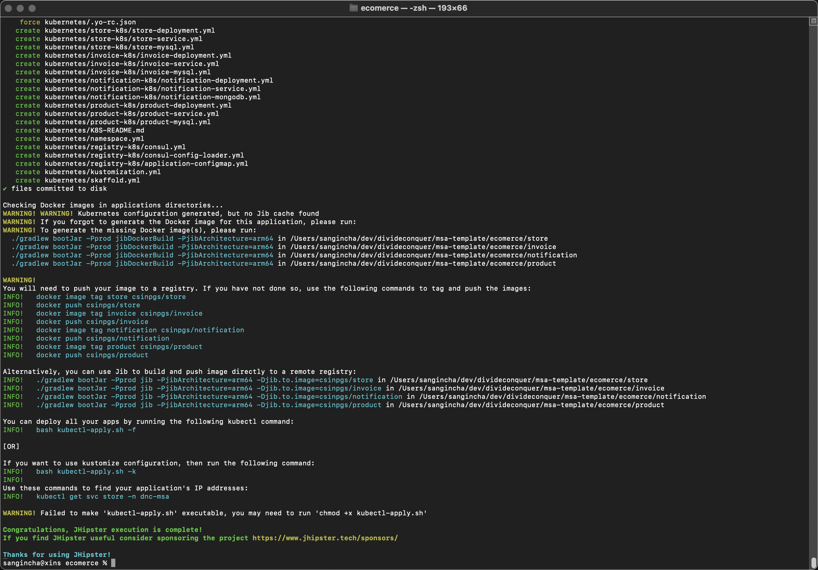 하나의 클라이언트의 gateway에서 생성되면서, keycloak을 이용해 oauth2 인증이 이루어지며, consul로 서비스 메시를 구성할 수 있고, kubernetes에 배포될 수 있는 sample을 찾던 중 가장 제가 원하는 조건에 부합하는 "microservice-ecommerce-reactive.jdl" 파일을 선택하게 되었습니다.