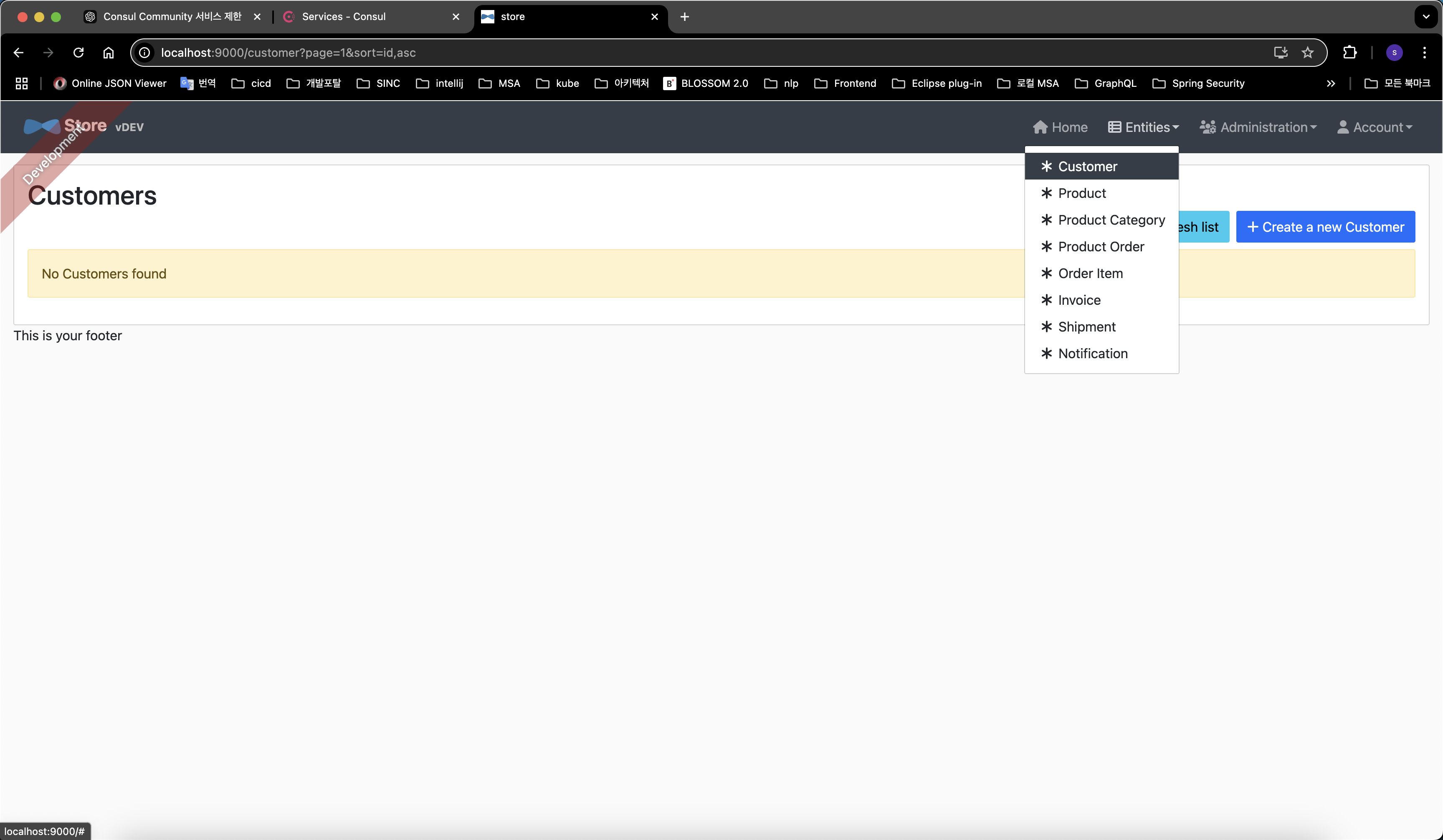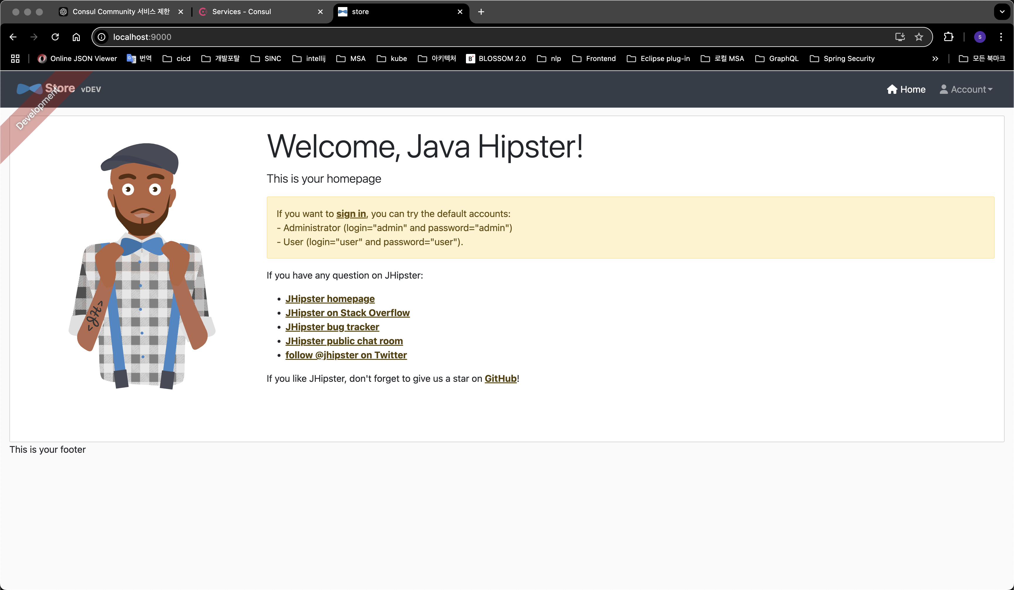 이번에는 jdl 파일을 이용해 msa 애플리케이션이 정상적으로 동작하는 것을 확인해 봤습니다. 한번 해봐서 그런지 reactive-mf.jdl을 이용해 애플리케이션을 생성했을 때보다는 좀 더 쉽게 완료 했고, 화면들도 정상적으로 실행이 되어 좋았습니다.