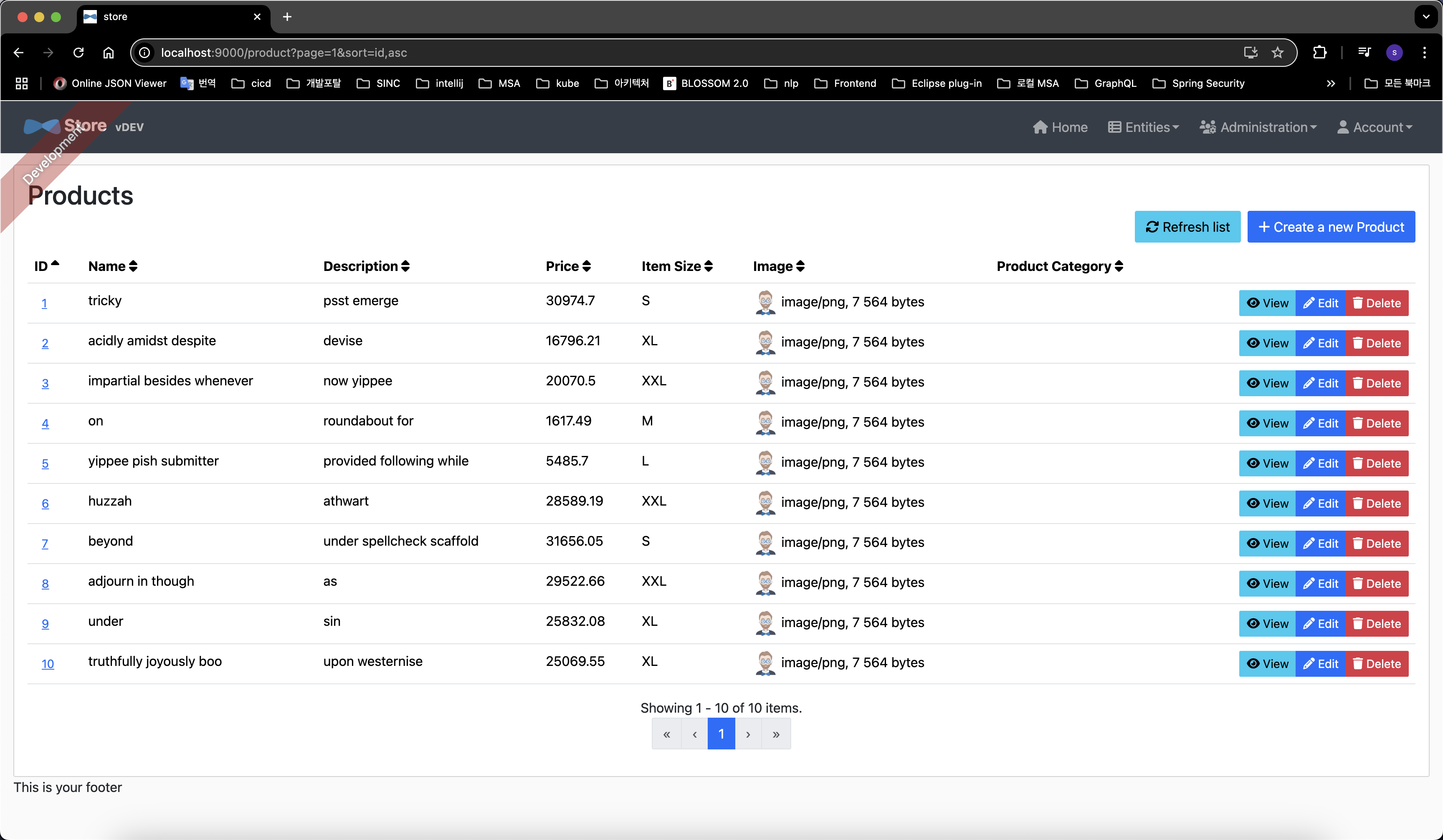 products 메뉴에는 liquibase를 통해 등록된 초기 더미 데이터도 보이네요.