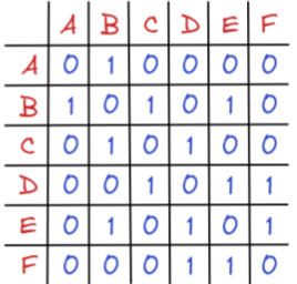 ์์ ๊ฐ์ ๊ทธ๋ํ๋ฅผ ํ๋ ฌ๋ก ๋ํ๋ด๋ฉด ๋ค์๊ณผ ๊ฐ๋ค๐