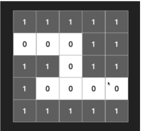 ๊ฒ์์์ด ๋ฒฝ์ด๊ณ ํฐ ์์ด ๊ธธ์ธ๋ฐ, ๋ฒฝ์ 1๋ก ๊ธธ์ 0์ผ๋ก ํํํจ์ผ๋ก์จ ๊ตฌ๋ถํ ์๊ฐ ์๋ค.