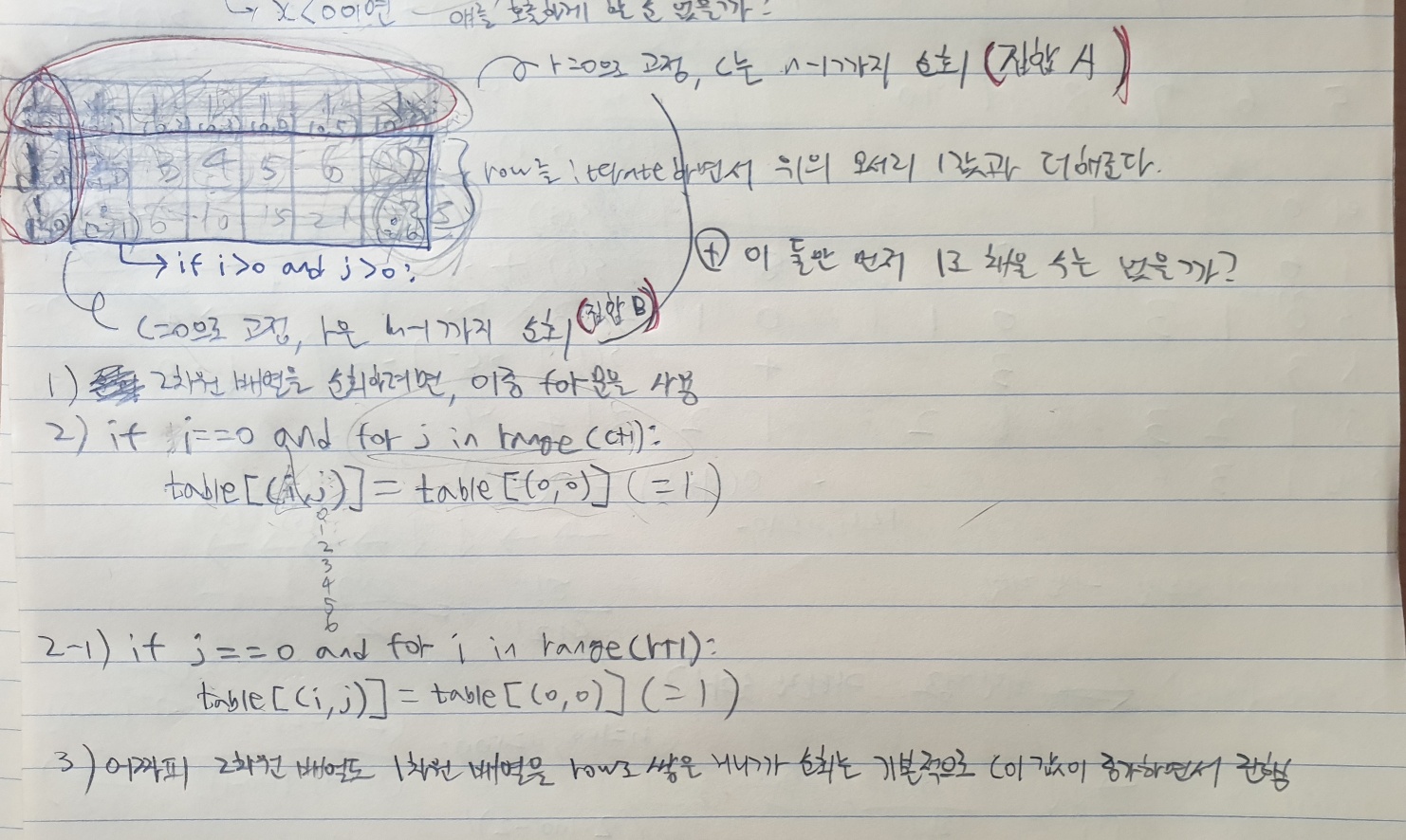 top-down ๋ฐฉ์์์๋ ์ฌ๊ท์ ์ผ๋ก ํธ์ถํ๋ฉด์ (0,0)์ ๋๋ฌํ๋ฉด 1์ ๋ฆฌํดํ๋๋ฐ, ์ด๊ฒ์ ํธ์ถํ ํจ์๋ก ๊ณ์ํด์ ์ ๋ฌํ๋ฏ๋ก ์ต์ข ์ ์ผ๋ก ๊ฐ์ฅ์๋ฆฌ๊ฐ 1๋ก ์ฑ์์ง๋ ๊ทธ๋ฆผ์ด ๋๋ค.