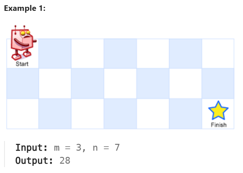 ์ด๋ intํ m, n์ด ์ฃผ์ด์ก์ ๋, ๋ก๋ด์ด grid[m-1][n-1]๋ก ๋์ฐฉํ ์ ์๋ ๊ฐ๋ฅํ unique paths์ ์๋ฅผ ๋ฆฌํดํ๋ผ.