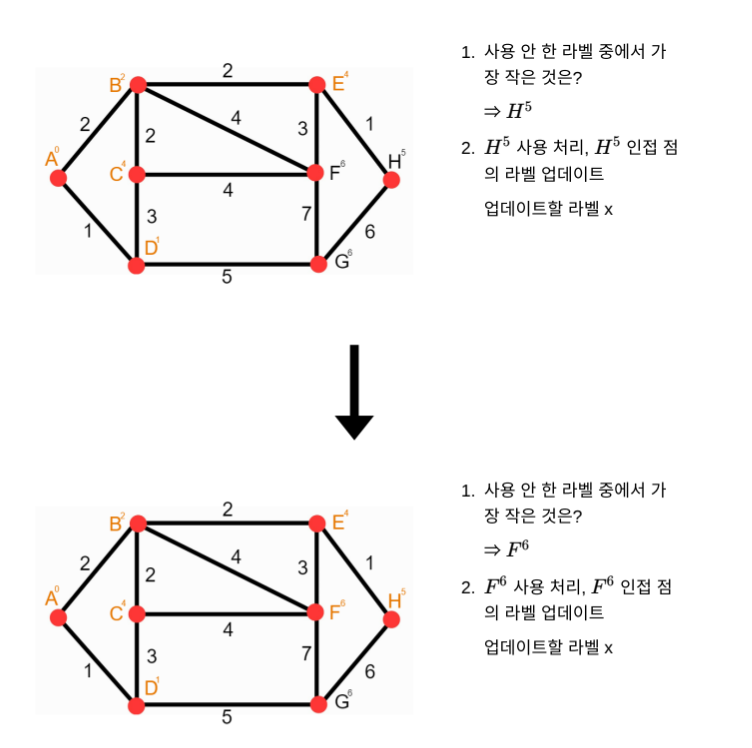 ๐ข๋ค์ต์คํธ๋ผ ์๊ณ ๋ฆฌ์ฆ์ด BFS+Priority Queue์ธ ๊ฒ์ ์์์ง๋ง, ๊ทธ๊ฒ๋ณด๋ค ๋ ์ค์ํ ๊ฒ์ ๊ฐ๊ณผํ๊ธฐ ๋๋ฌธ์ ์ฐ์ "๋ชจ๋ ๋ ธ๋๋ฅผ ๋ผ๋ฒจ๋งํ ์ดํ์์ผ ์๊ณ ๋ฆฌ์ฆ์ ์ข ๋ฃ"๋ฅผ ์ ํด์ผํ๋์ง ๋ค์ ๊ทธ๋ํ๋ฅผ ๋ณด๋ฉด์ ๋ถ์ํด๋ณด์.