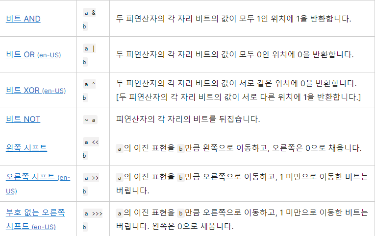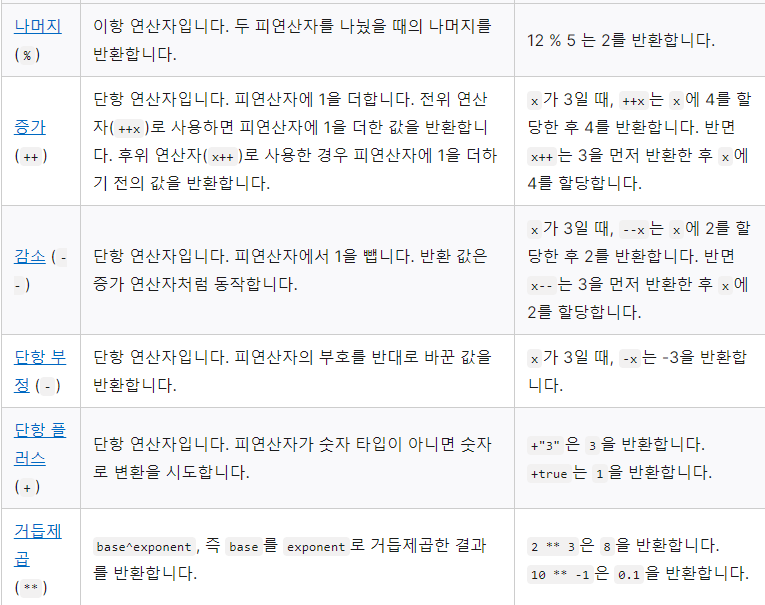 https://developer.mozilla.org/ko/docs/Web/JavaScript/Guide/Expressions_and_operators