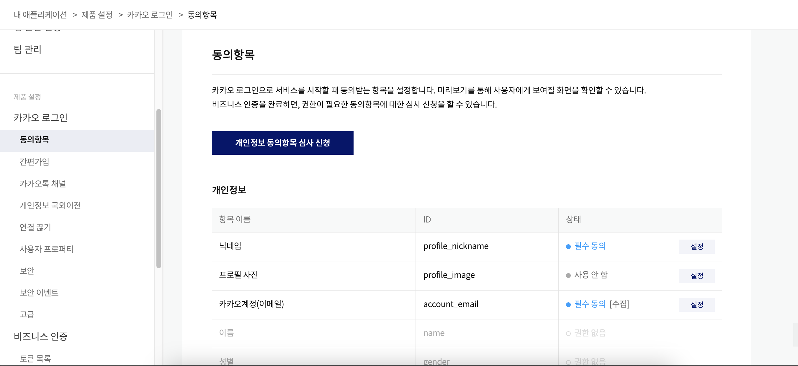 - 카카오 서버로부터 사용자의 어떤 정보를 받을지 정할 수 있다.