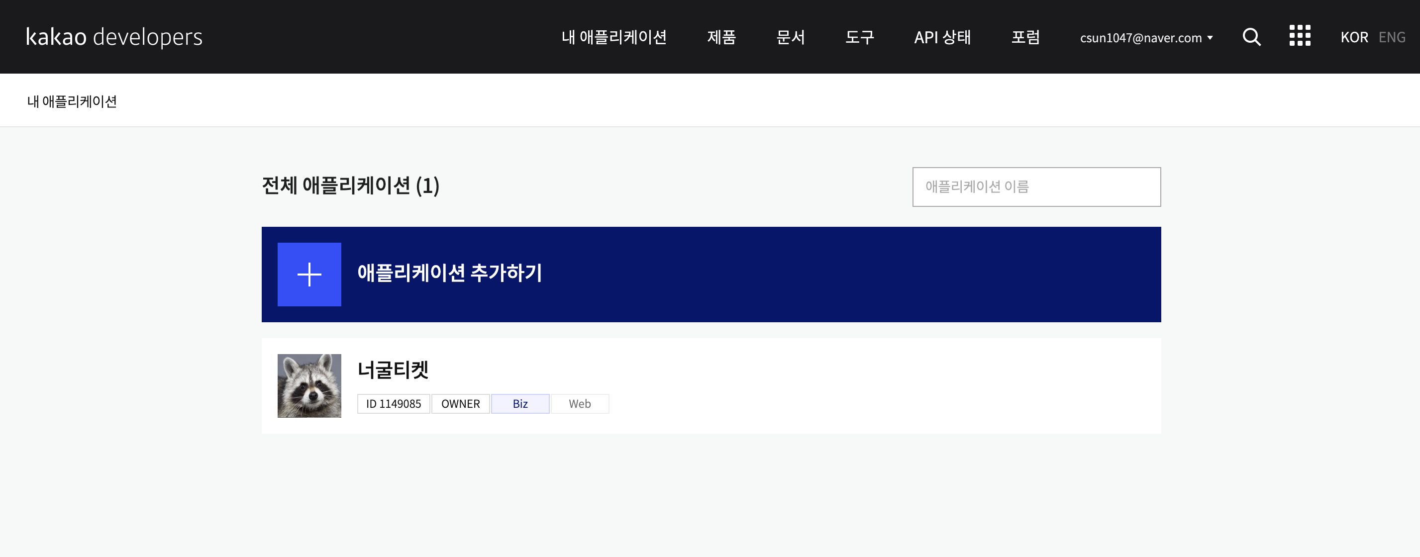 카카오디벨로퍼스 사이트에서 회원가입을 먼저 한 후,