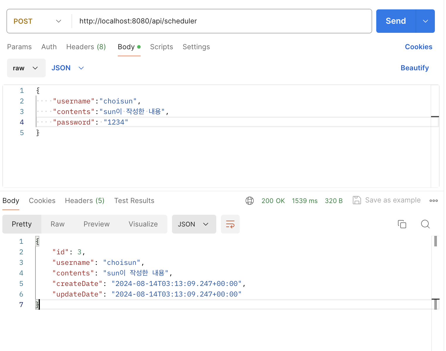 String sql = "INSERT INTO scheduler (username, contents, password, createDate, updateDate) VALUES (?, ?, ?, ?, ?)";