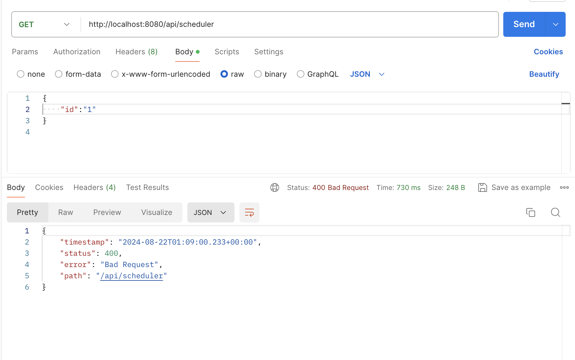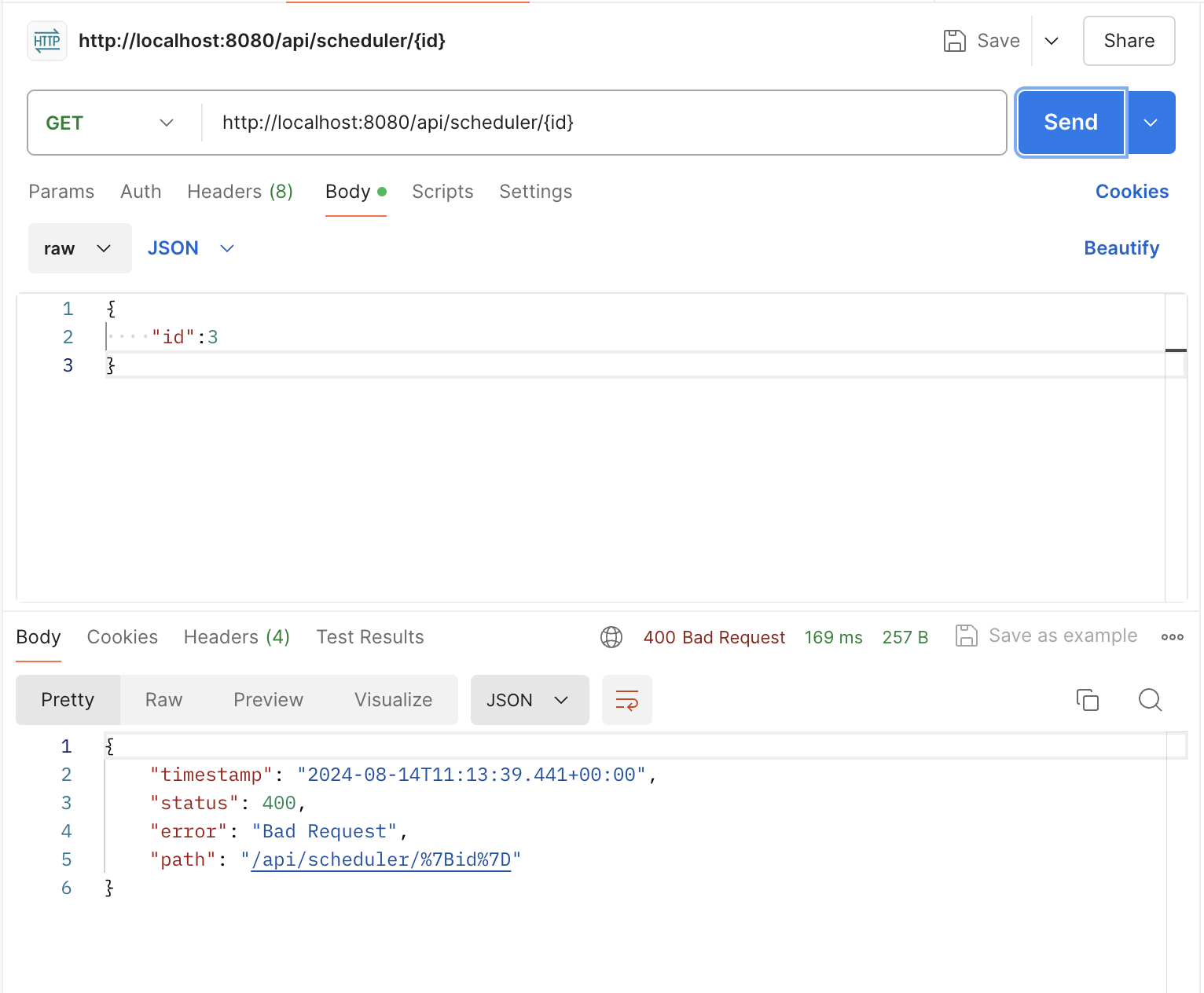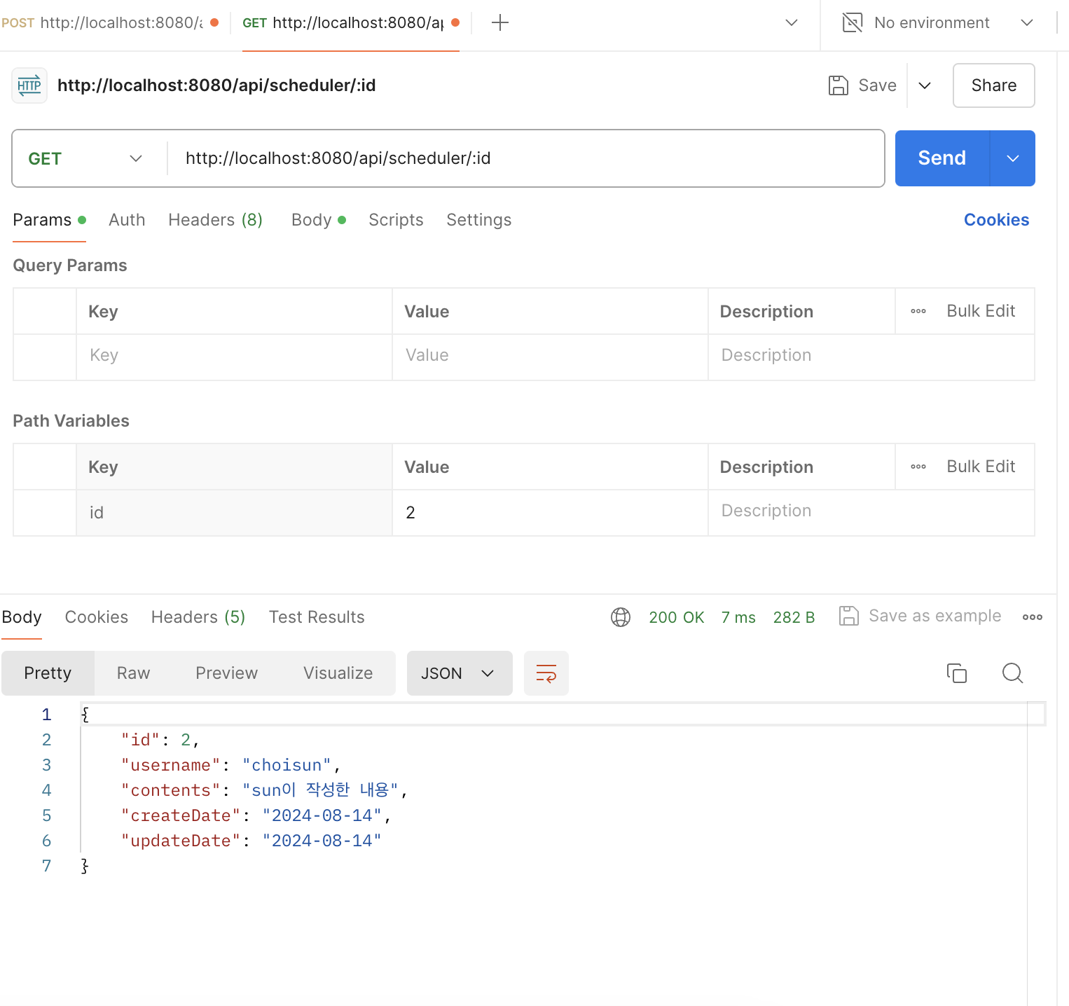 해결2. 코드에서 변수를 @RequestBody가 아니라 @PathVariable라고 했기 때문에 Body영역이 아니라 Params 영역에서 Value에 작성해야한다.