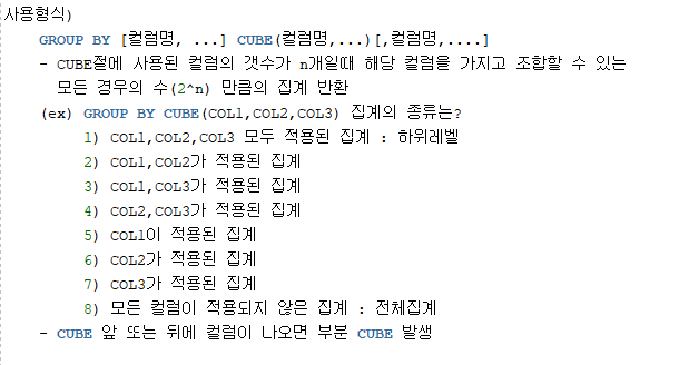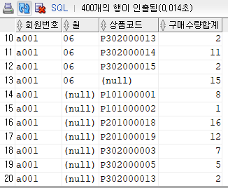 기준이 모두 적용된 하위레벨부터 기준을 오른쪽 부터 하나씩 제거한 집계를 반환