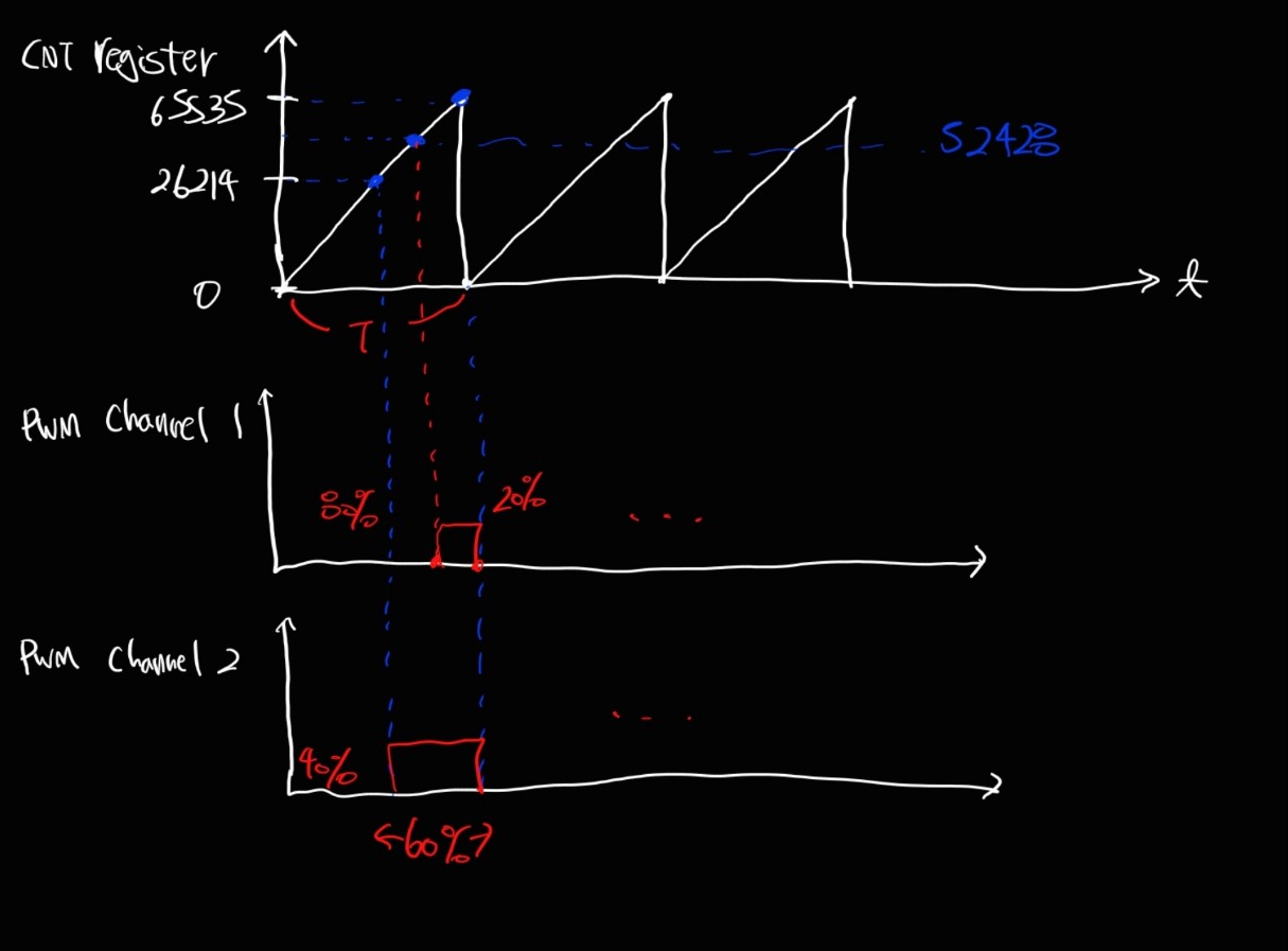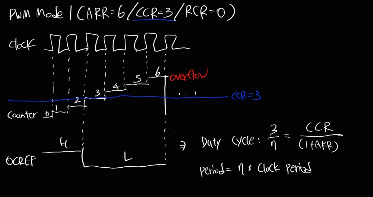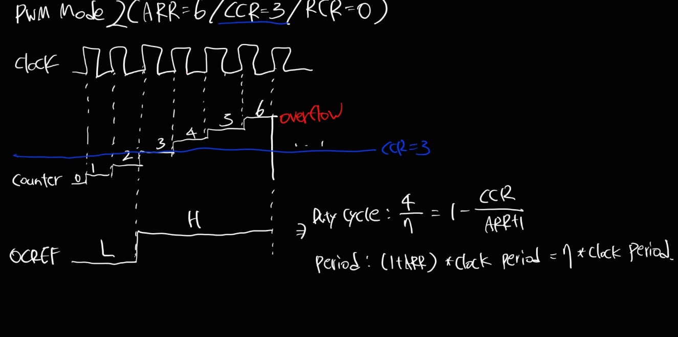 CCR에 정해진 값과 같다면 event가 발생하고, 이에 따라 PWM 신호가 출력되는 것이다.