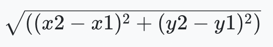 - 유클리드 거리: 유클리드 거리는 피타고라스 정리를 이용한 방법이다. (x1,y1) 위치의 점과 (x2,y2) 위치의 점 사이의 대각선 거리를 구할 때 사용