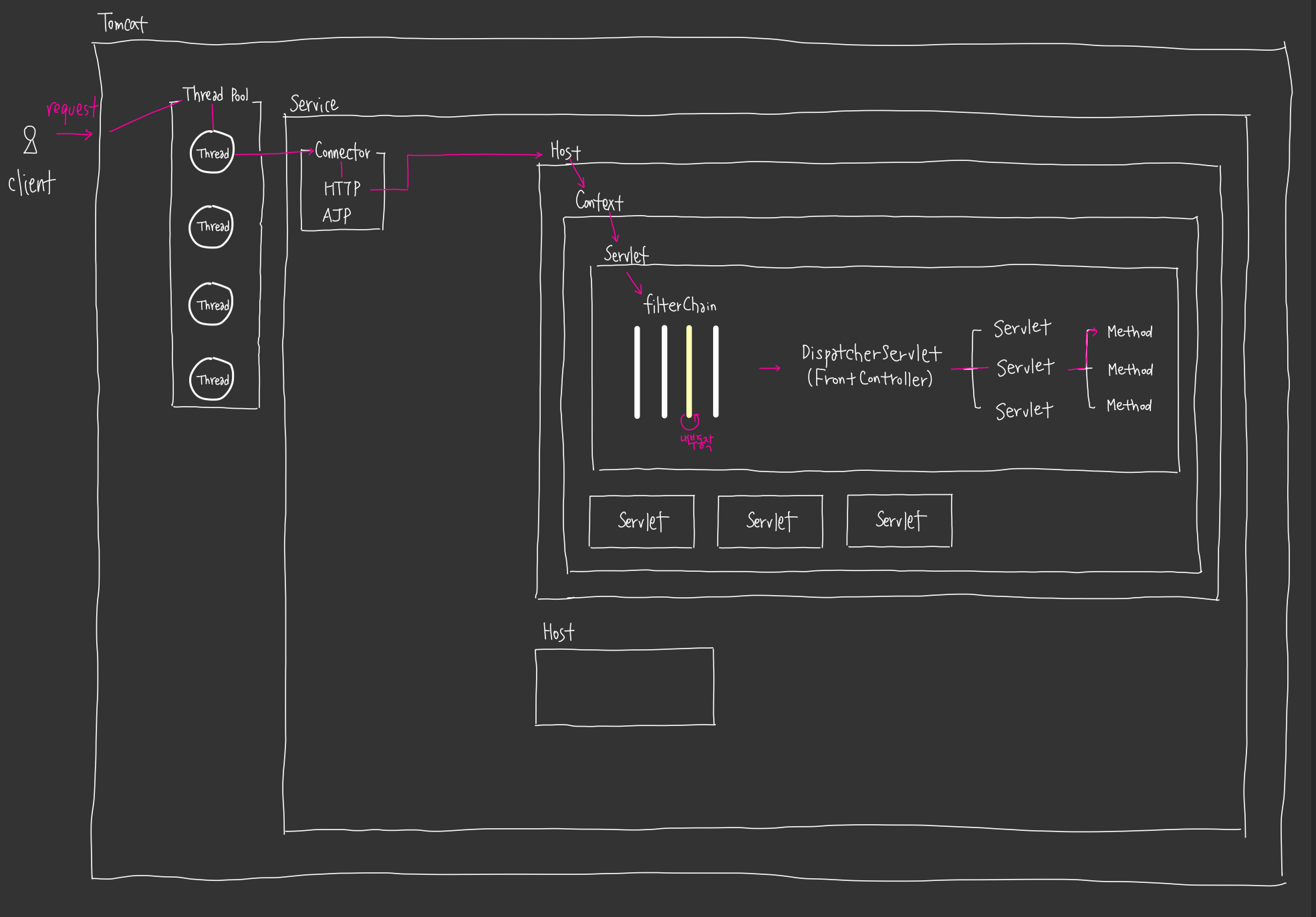 - Connector : 프로토콜에 따라 특정 Connnect로 client와의 통신을 처리하는 계층