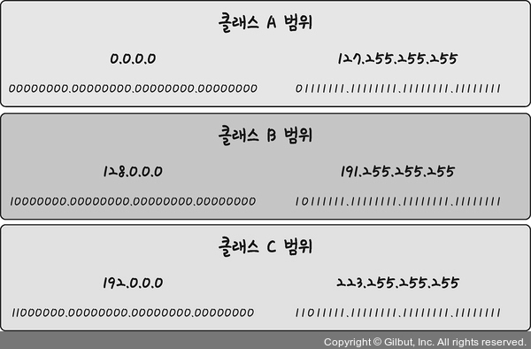 00000000.00000000.00000000.00000000 ~ 01111111.11111111.11111111.111111110.0.0.0 ~ 127.255.255.255네트워크 주소와 브로드캐스트용 주소