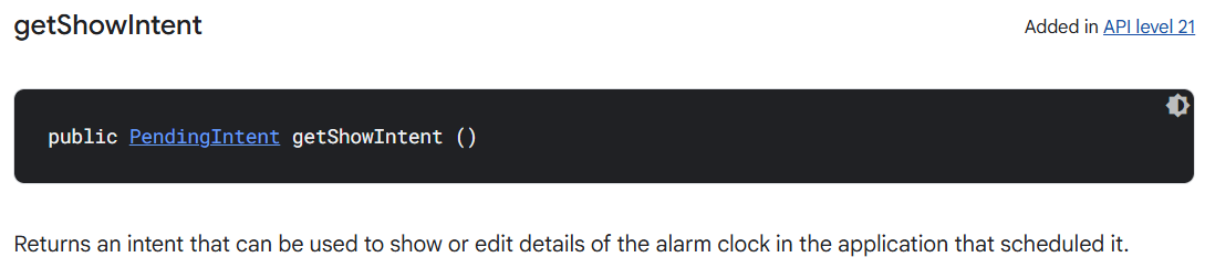 는 해당 알람의 세부 정보를 표시하거나 편집하는 데 사용되는 인텐트입니다.