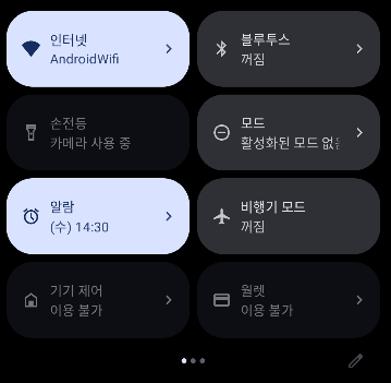일정 버전 이상부터는 현재 설정된 알람의 정보를 퀵 패널에서 확인할 수 있습니다.