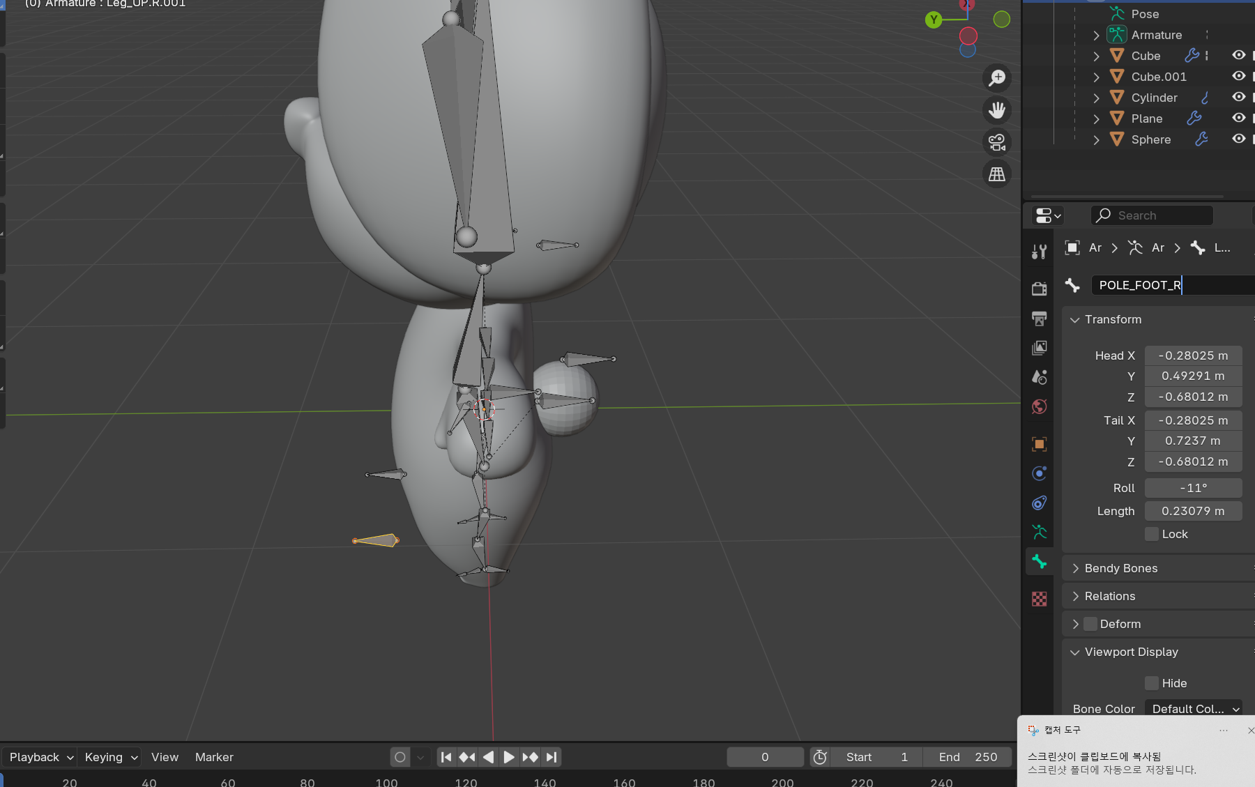 3) > 손가락뼈 선택