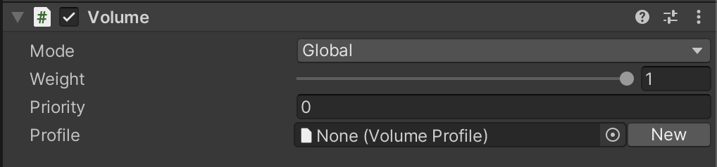 - Mode : URP가 이 볼륨이 카메라에 영향을 줄 수 있는지 여부를 계산하는 방법을 선택