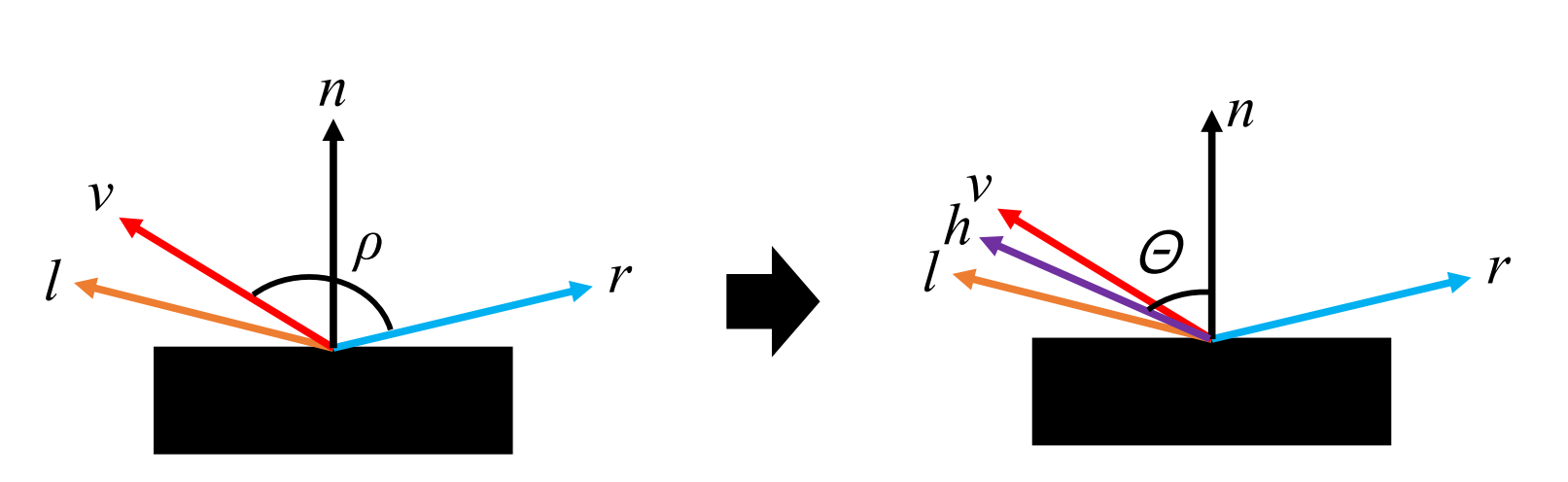 - n,l,r,v 모두 world space에서 정의됨