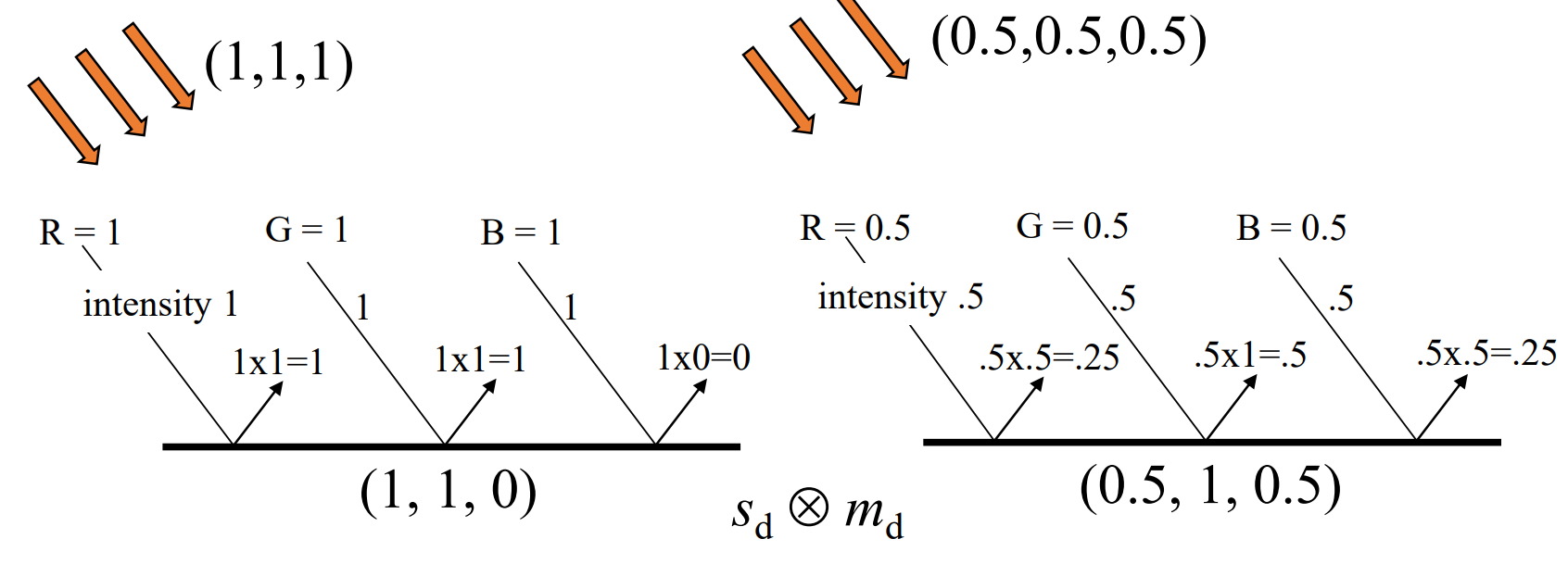 - max(n⋅l,0), sd는 광원의 색, md는 물체 material의 diffuse 반사율