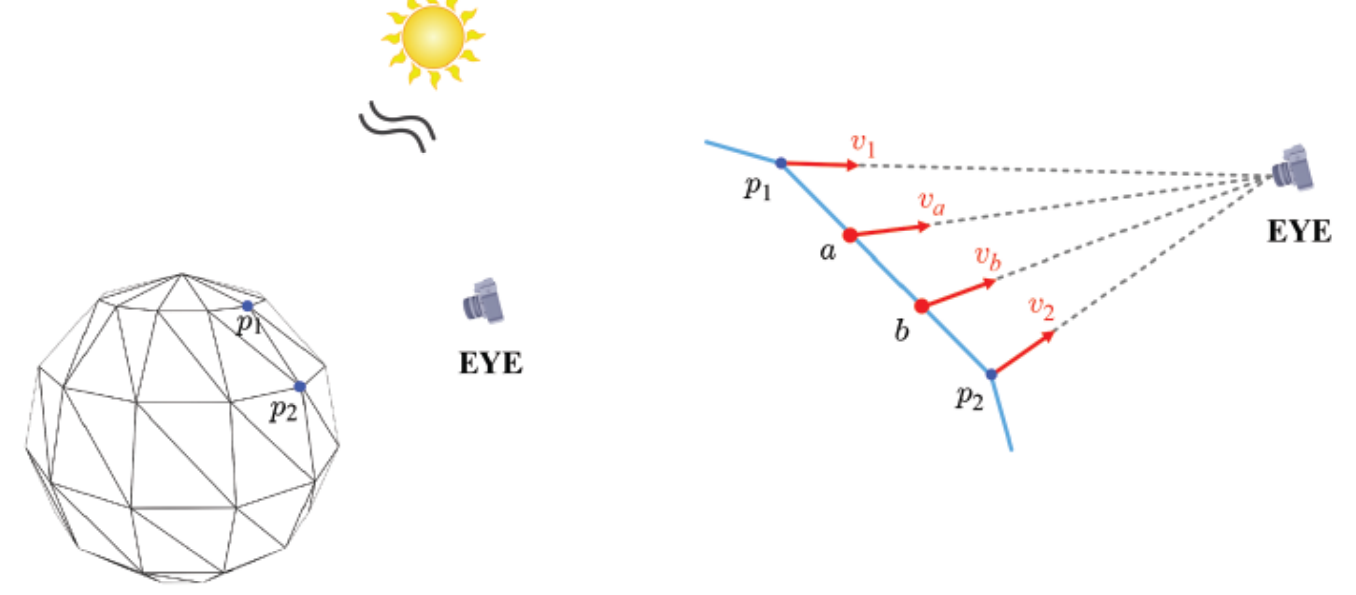 - a,b 는world-space의 view vector도 알아야 함(va,vb)