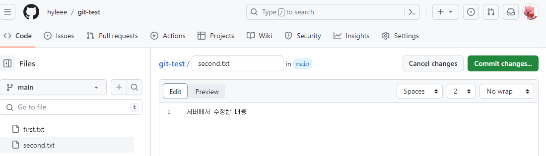 - 서버에서 수정 후 pull 해오는 방식으로도 작업 가능