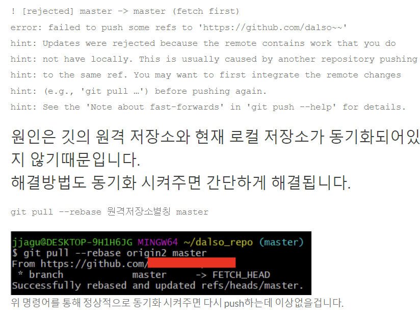 github에서 원격repository 새로 만든 후