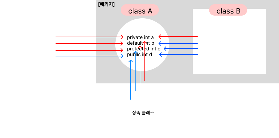 ex. 같은 패키지O, 다른 패키지X, 다른패키지+상속O