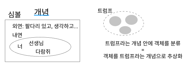 주로 객체들을 개념 안에 분류하는 방식으로 추상화를 실현한다.
