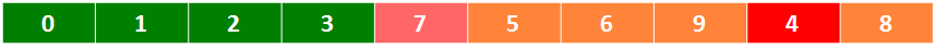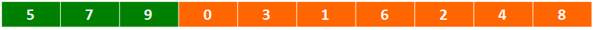 7 > 5이므로, 5는 7의 왼쪽으로 이동시켜준다.