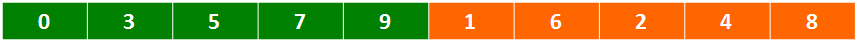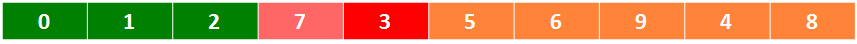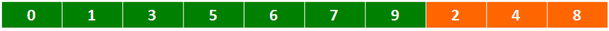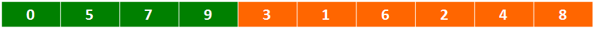 피봇 값을 중앙으로 이동시킨다 (피봇 값 왼쪽은 피봇 값보다 작고, 오른쪽은 피봇 값보다 크다. 이 과정을 파티션 또는 분할 이라고 한다.)