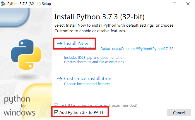 을 실행해도 되고 cmd에서 python을 선택해도 된다
