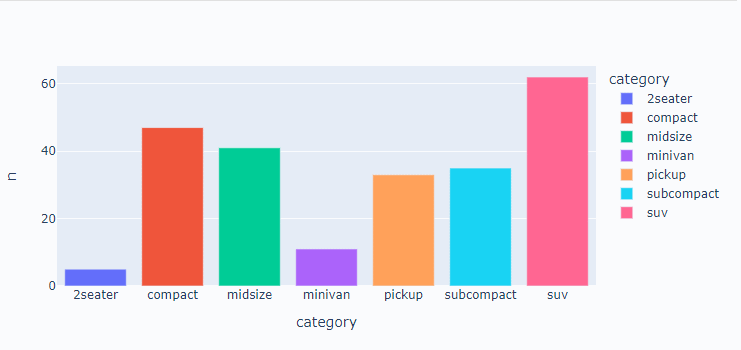 px.bar(data_frame=df, x = 'category', y='n', color='category')