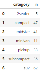 df = mpg_data.query('cty <= 6.5 | cty >= 26.5')