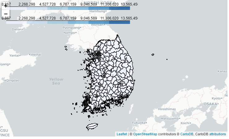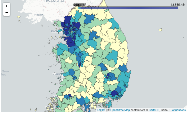 지역별 통계칠르 색 차이로 표현한 지도를 단계 구분도라고 합니다. 이를 만들면 인구나 소득같은 통계치가 지역별로 어떻게 다른지 쉽게 이해할 수 있다