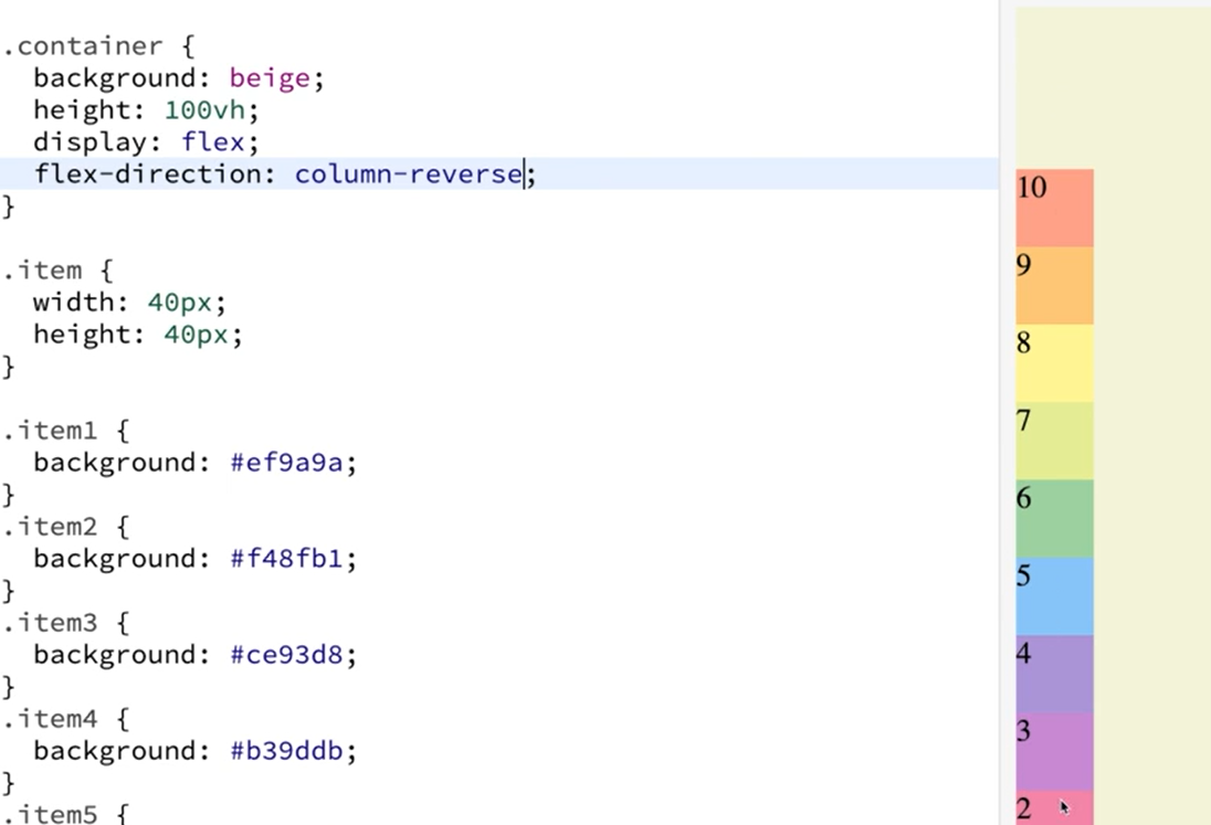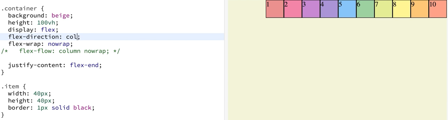 flex-end;는 중심축이 row이면 아이템을 오른쪽을 기준으로 정렬. 오른쪽에 붙여놓을뿐 아이템 순서를 reverse 하지는 않음