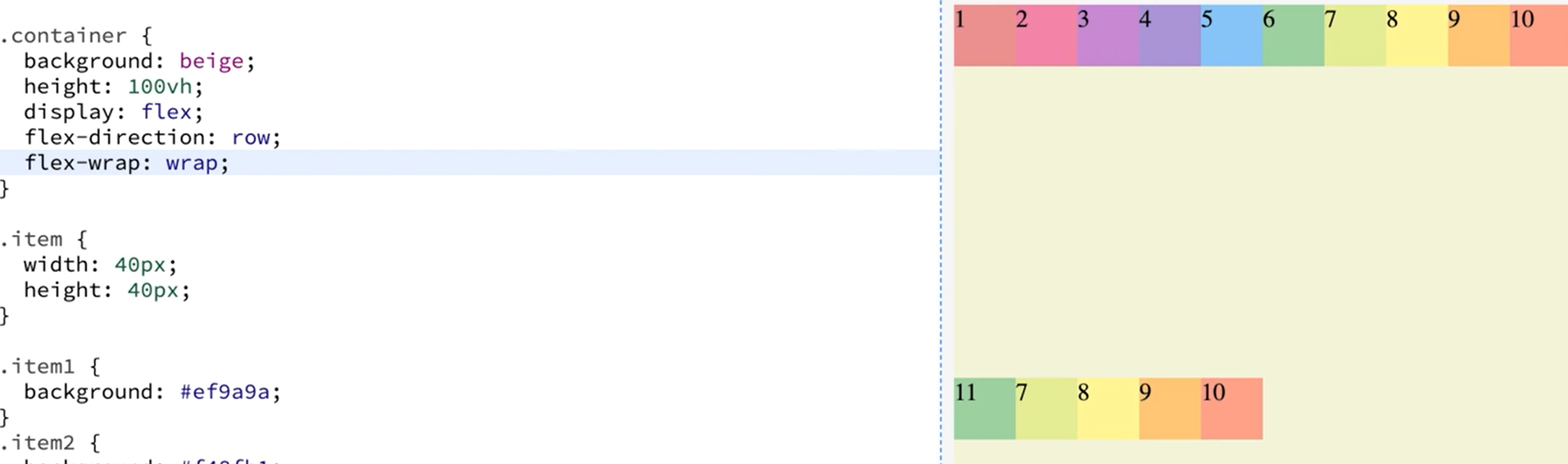 flex-wrap: wrap; 아이템이 창크기에 비해 많은경우 자동으로 다음줄로 넘어감