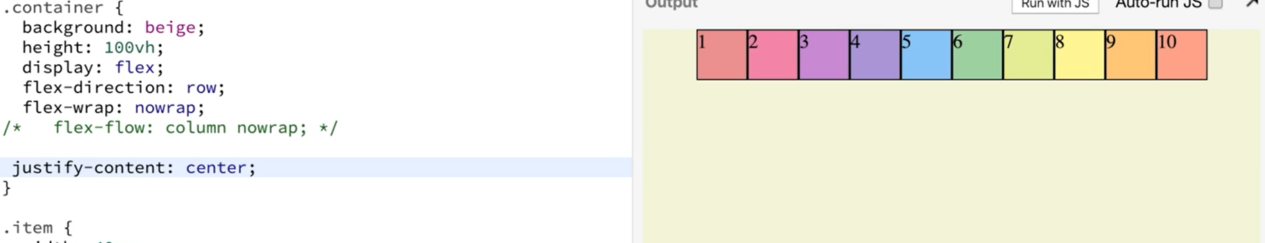 - center; row 가 메인일때 수직으로 가운데에 배치한다.