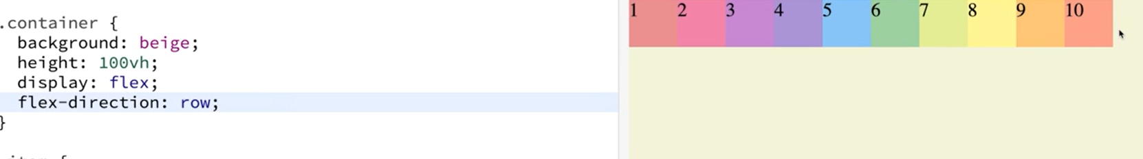 flex-direction: row; 기본값은 row 이다. 왼쪽에서 오른쪽으로 수평 배치(중심축이 수평)