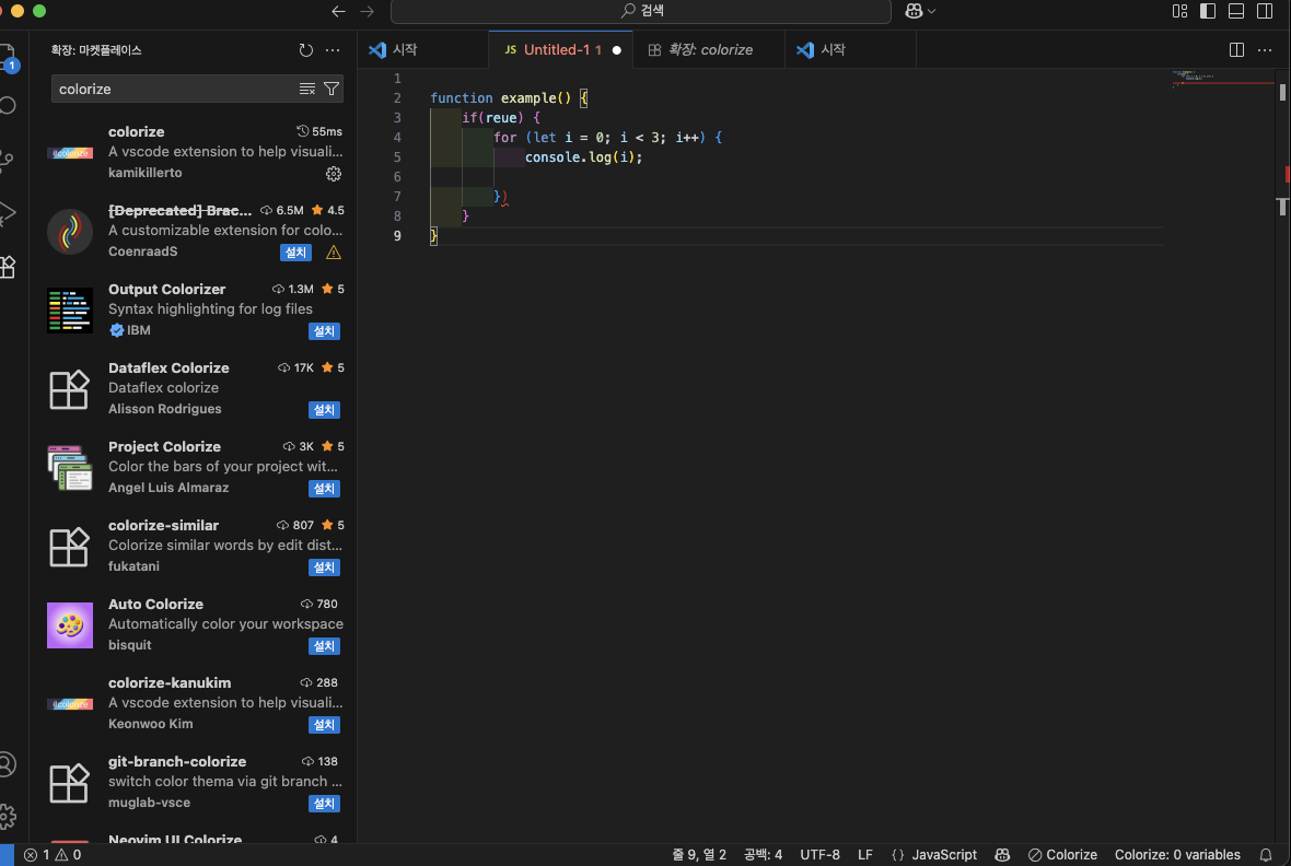 예: Python, Indent Rainbow, Better Comments
